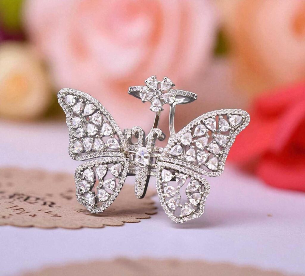 Rhodium Plated Tortoise Designer Finger Ring With Crystal