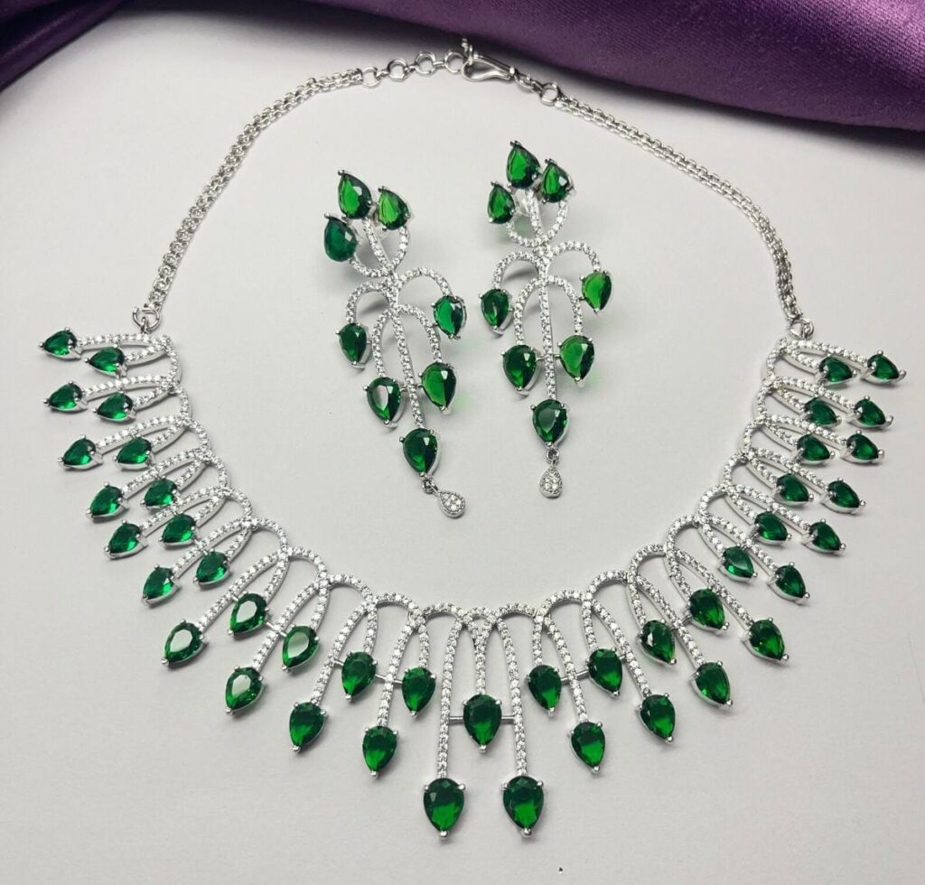 Stylish Silver Plated Cubic Zirconia American Diamond Special Necklace With Earrings Set for Women